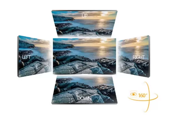 El ángulo de visión es de hasta 160 ° vertical y horizontal, lo que proporciona un amplio ángulo de visión.
