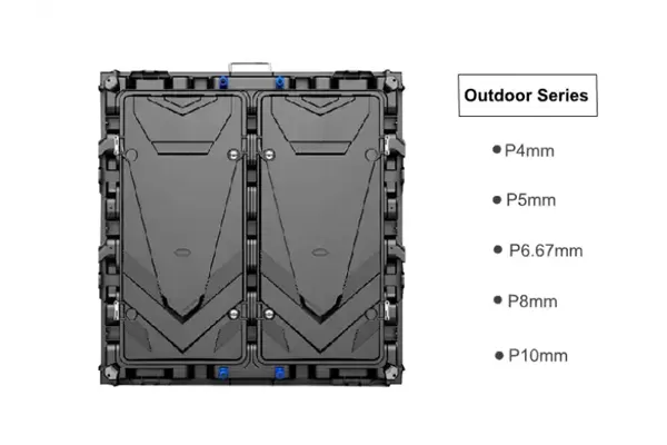 Las series al aire libre incluyen P4mm, P5mm, P6.67mm, P8mm, P10mm.