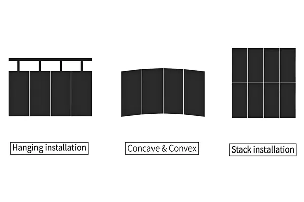 Para cumplir con los diversos aspectos del campo de la pantalla LED, la pantalla LED de la serie 500/1000 está diseñada para la instalación curva. Curvado con cada 2,5 ° entre-10 ° y 10 °, lo que puede hacer convexo y cóncavo.