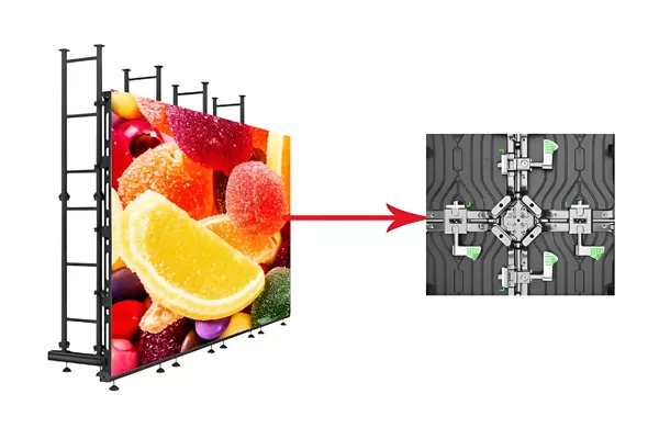 La pantalla LED de alquiler de la serie 500 es un producto de mantenimiento dual, no solo 100% accesible frontal, sino que también puede hacer un servicio trasero. Los paneles LED son magnéticos y se pueden quitar mediante herramientas del lado frontal en 5 segundos. Fácil y conveniente, ahorra costes y mano de obra.